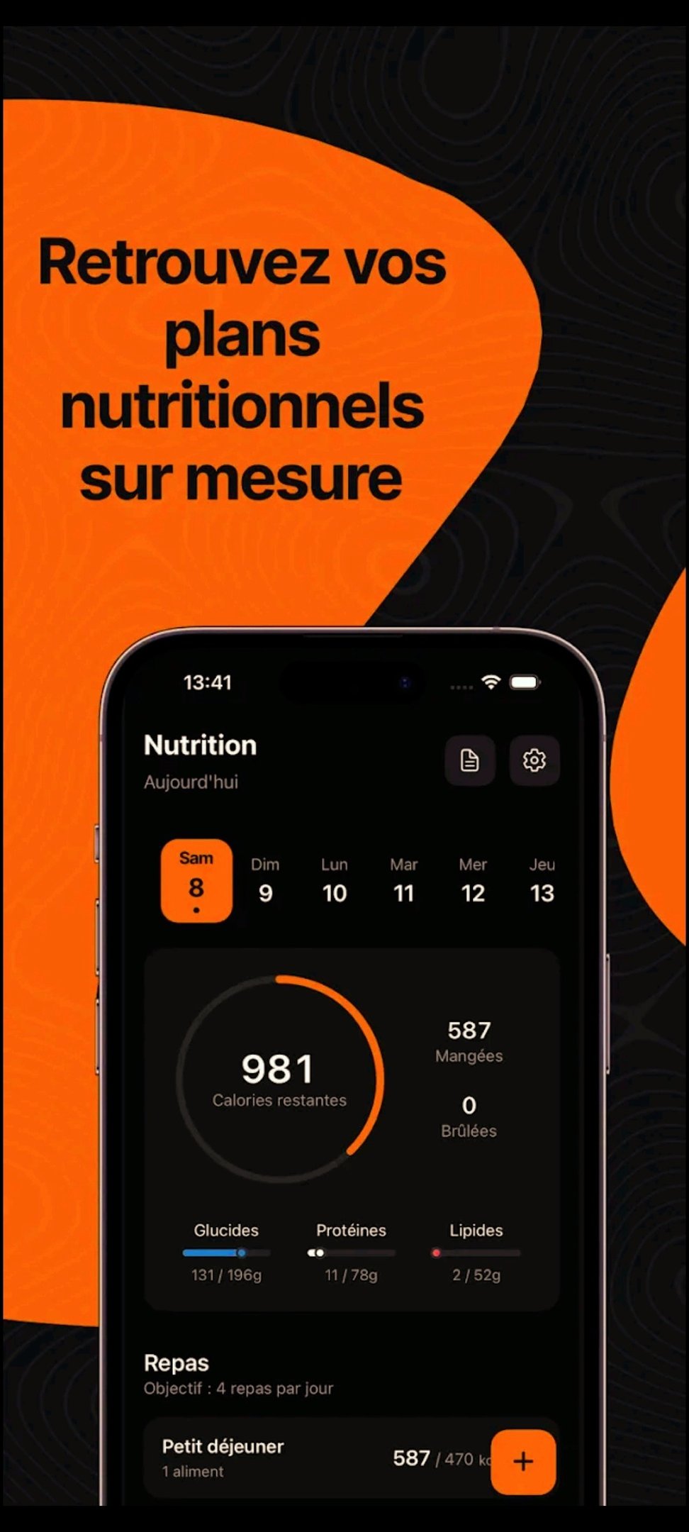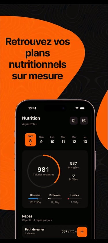 Un accompagnement nutritionnel personnalisé, avec des recettes proposées, pour atteindre vos objectifs de santé et de performance.